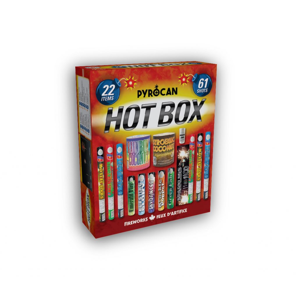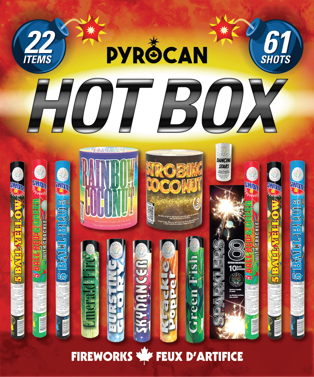 Hot Box es una caja que contiene una variedad de fuegos artificiales. Siendo un producto relativamente barato, el diseño debía ser simple pero impactante.