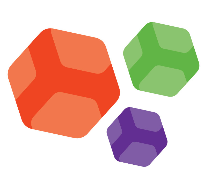 El isotipo es una audaz propuesta cromática, donde la dinámica de los tres cubos en sinergia le dan mucho movimiento e impacto.